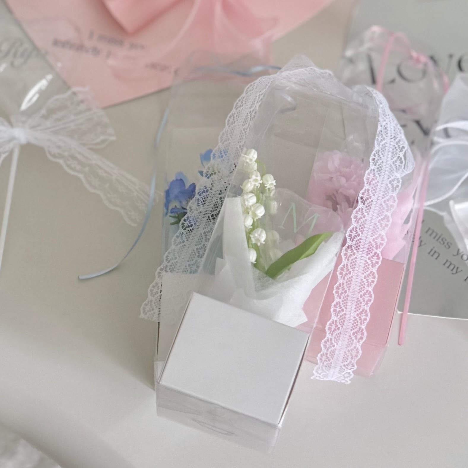 "Clear box bouquet"